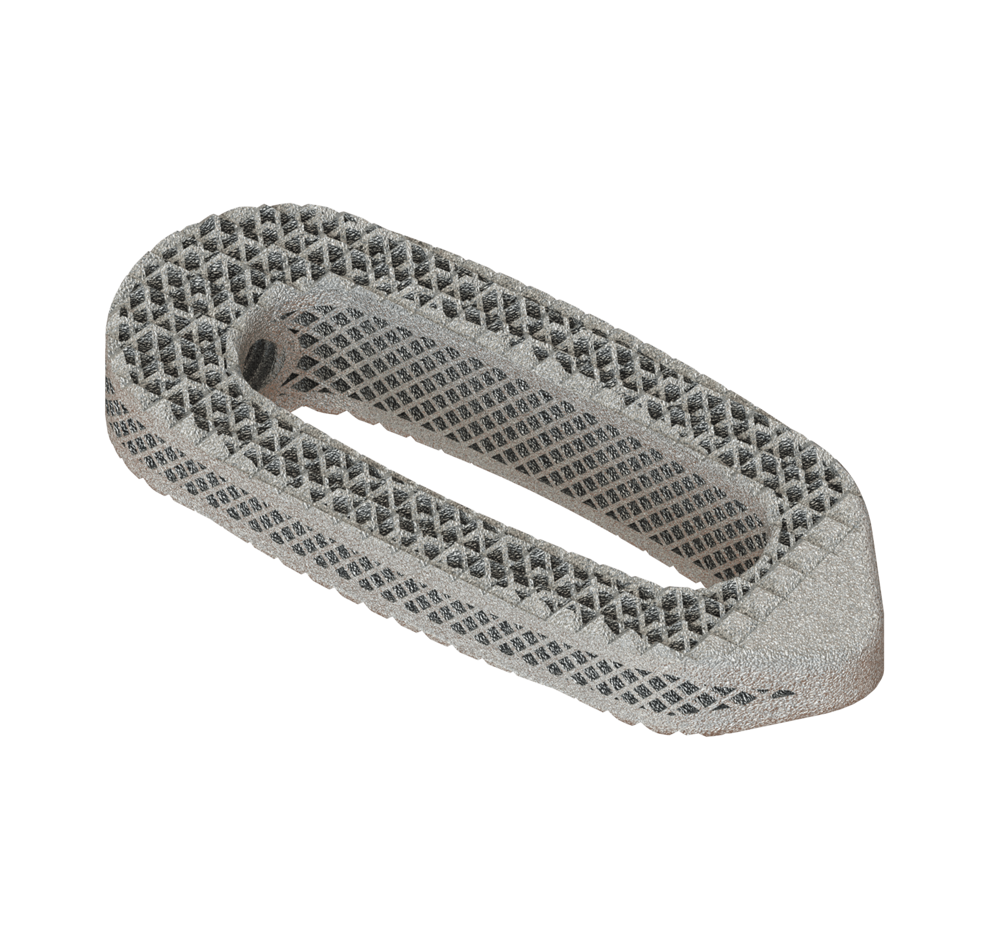 The Aries interbody fusion devices feature a proprietary multi-axis mesh and optimized micro-surface topography, both of which are designed to facilitate fusion. The product’s lattice helps increase the implant’s porosity to 80%, which provides unparalleled in-situ radiovisibility compared with other titanium implants. The implant’s anatomic profile, anti-migrational teeth, and streamlined insertion promote reduced recovery time by helping increase procedural efficiencies.