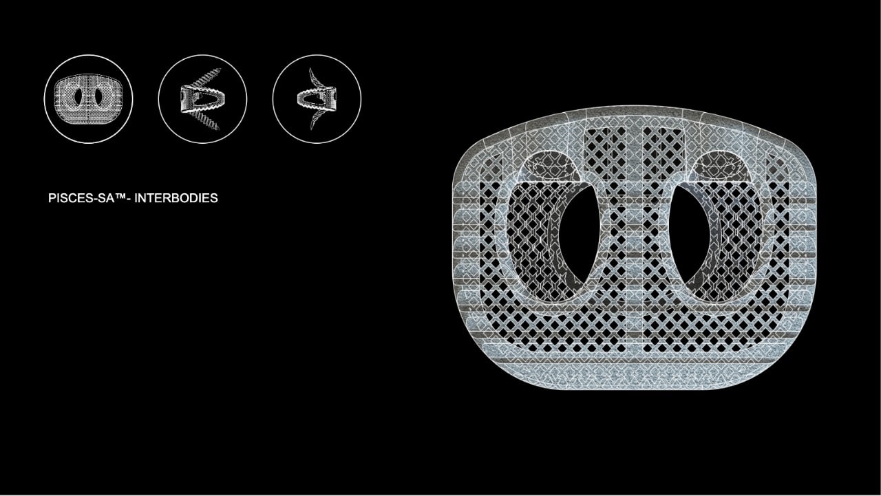 The Pisces-SA is an innovative Standalone ALIF platform integrating a highly porous 3D printed interbody with anatomical morphology designed for full osseointegration, streamlined instrumentation and anchor fixation technology for a minimally invasive approach, and guided locking plate to ensure lock confirmation. With a focus on fusion, fixation, and MIS approach, the Pisces-SA is the new standard for Standalone ALIF.